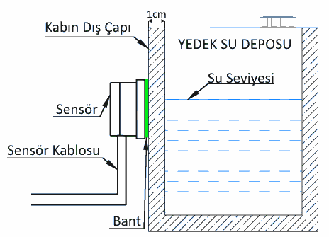 Cevap: Arada 10-12mm (1cm) civarı engel olsa bile suyu algılayabilmektedir. (Max 20mm.) Yani yedek su deposunun dış çapı her türlü suyu algılamaya yetmektedir.