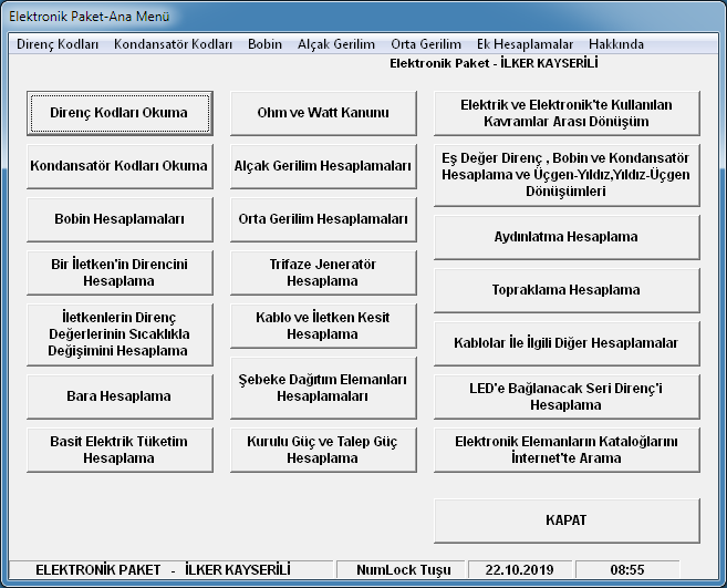 Elektrik Elektronik hesaplamaların bulunduğu program bir dosyada birleştirilmiş.